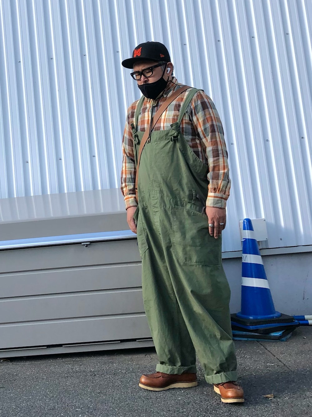 10代の頃、nepenthesの商品で初めて買った物の1つ。 遠目に見たら普通のチェックシャツですが、近くで見るとかなり凝った生地になってます。 キャップ、ループタイはNeedles、オーバーオールはengineered garmentsと、全身nepenthesコーデ。
