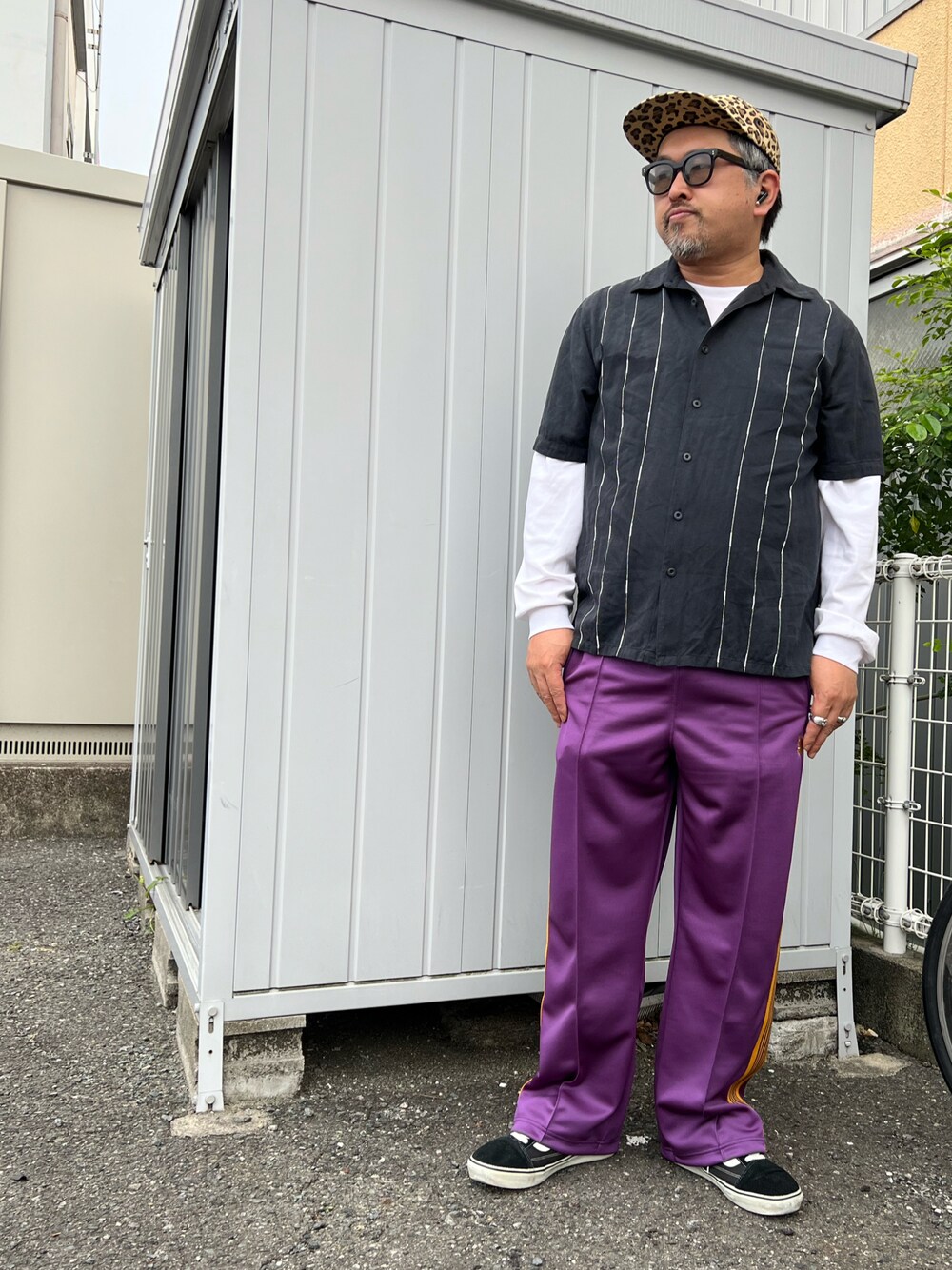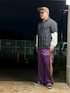 レイカーズカラーのトラックパンツ。 色味が素敵です。 ヴィンテージ のシルク100%のシャツ。光沢もなく、一見コットンっぽいですが、柔らかスベスベです。白のステッチが効いてます。