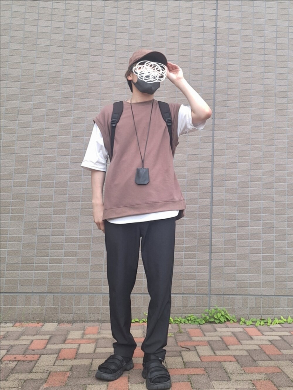 帽子とトップスが比較的かわいいブラウン 色自体は秋っぽい 今ネイルもブラウンだからおそろい 夏休みなのに授業あるって意味分かんないですよね