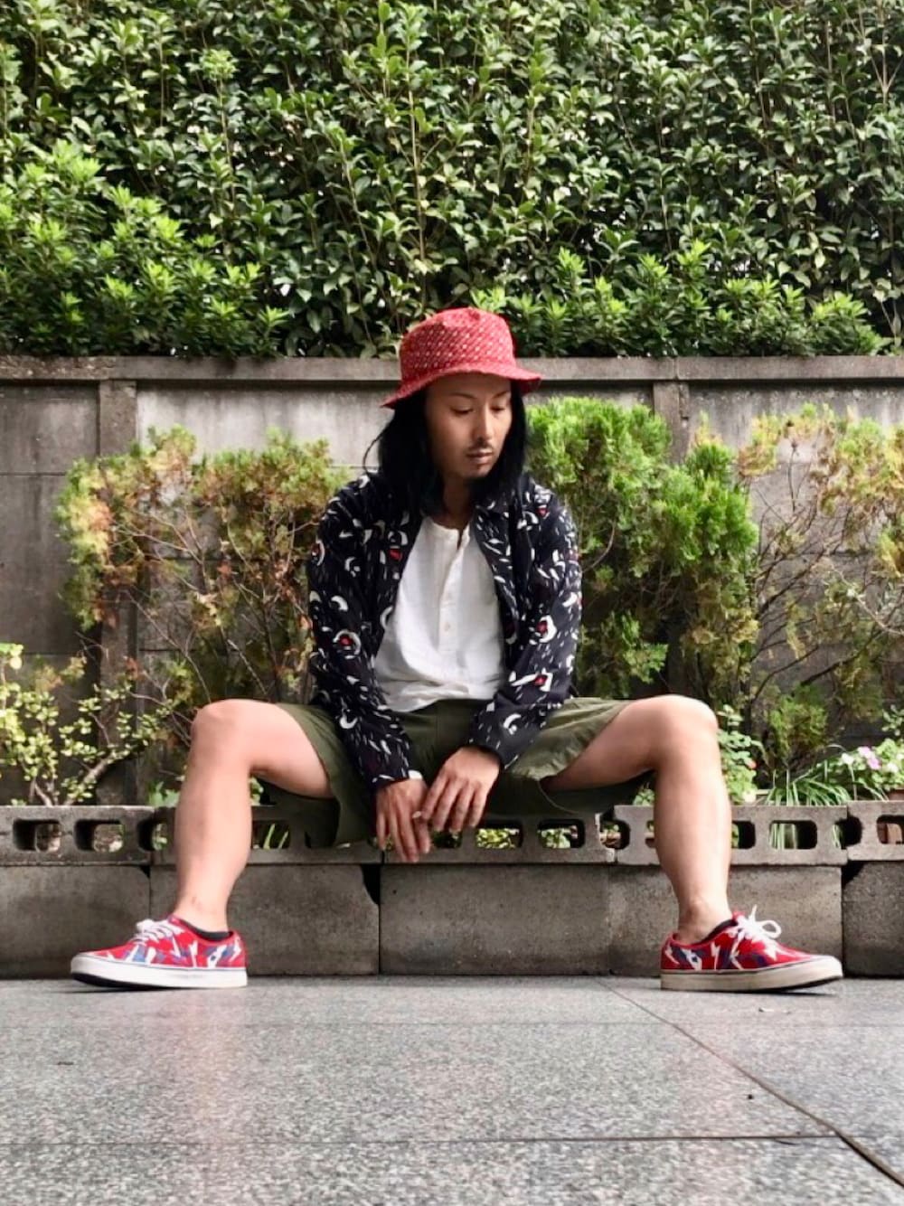 こんにちは🍃 今日は、短パンのコーデです。 ⛄️寒いのに ( ✌︎'ω')✌︎ ▶️全体の服装は、スワイプ☞してみていただけると嬉しいです。 🪖HINSON短パンカーゴと柄シャツ。 アディダスのバケハとVANSのオーセンティックの柄物あわせ。 🕵️♂️ヤナギハシさん(WEAR)が素足スニーカーしていらしたのに影響うけて、同じように座りポーズで投稿してみました。 🧦僕は靴下はきました。 あの方は、自然体でかっこいいですよね。♪( ´▽`) 今日がみなさんにとって楽しく明るく、素敵な1日になりますように✨\( 'ω')/ じゃね👋
