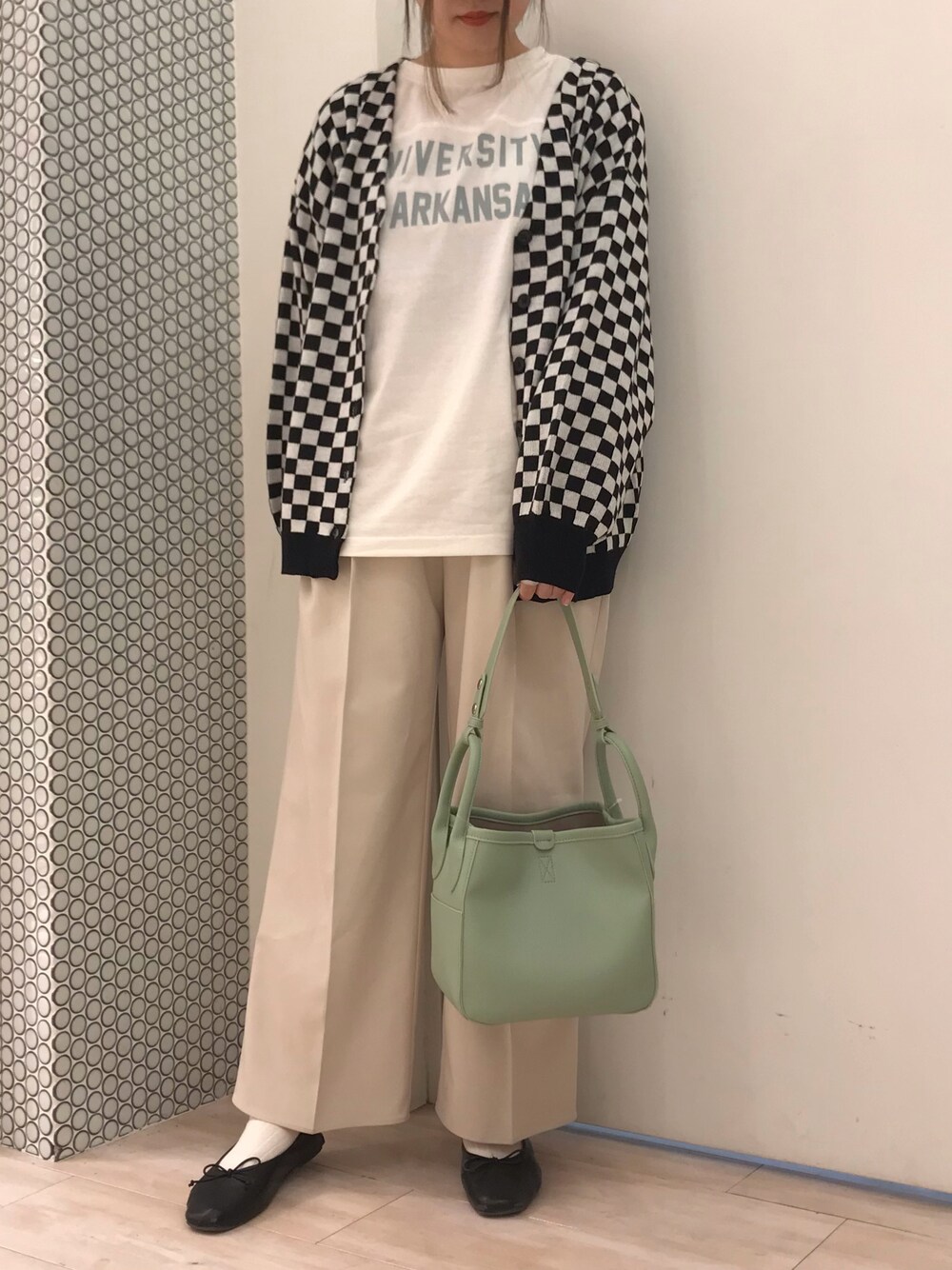 *̣̩⋆̩ SLURR 春の新作コーデ ┈┈┈┈┈┈┈┈┈┈┈┈┈┈┈┈┈┈┈┈┈┈┈┈┈┈┈┈┈┈ SLURR新作のパンツコーデです♥⸝⋆︎* 下記、商品一覧です𓂃◌𓈒𓐍 ⿻RAY CASSIN ロゴptタックロンT/6P21L1C0600 胸元の切り返しとやや大きめのロゴが特徴的なロンTです! 袖口もややボリューム感があり1枚で着た時も可愛いですが、強すぎないちょうど良いボリューム感なので今回のコーデのように上にカーディガンを合わせてもごわつきにくいです◎ ⿻SUGAR SPOON チェッカーガラニットカーデ/6P21L2D0400 トレンドのチェッカー柄はやっぱりWhite×Blackの色の組み合わせがおすすめです!カラーパンツやカラートップスとの相性も抜群です♥ ⿻SLURR ベルト付タックワイドパンツ/CA15L0F0300 SとMとサイズ展開があり、私はMを着用しました! スッキリとしたシルエットですが、ウエストはゴムでゆったり履くことが出来ます◎ 又、センタープレスで縦のラインが出来るので細見え効果もあります♪ ベルトはフロントではなく、サイドで垂らしてモード感を出すかリボン結びで可愛くも見せることが出来ます! ⿻cache cache 2WAYシュリンクショルダー/6P21L0J0100 カジュアルでもキレイめでもどんなコーデでも合わせやすく、イチオシのバッグです! 今回は春らしいカラーのGreenを使用しました★ ┈┈┈┈┈┈┈┈┈┈┈┈┈┈┈┈┈┈┈┈┈┈┈┈┈┈┈┈┈┈ Instagram ♡⃛ @gpayagon