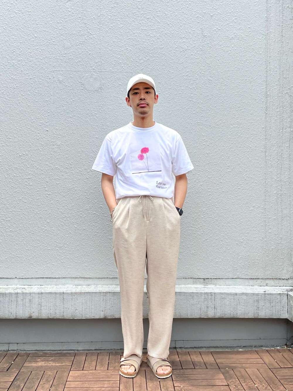 高橋恭司さんコラボのTシャツを主役にコーディネートしました。花柄を際立たせる為他はシンプルに。
