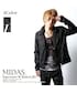スタイリッシュなダブルライダースに人気のZIPダメージスキニーを合わせたロックコーデ。全体に"黒"を主体としつつもインナーに挟んだ総柄タンクが妖艶なアクセントを効かせている。 ライダースジャケット: マットな艶感を持つ上質なPUレザーを使用したダブルライダースジャケットです。 部分的に質感の異なるスウェード風生地を切り替えたバイカラー仕様。 エッジの効いたモードライクな雰囲気に仕上げています。 裏地にはさらりとしたストライプタフタを使用することで袖を通しやすく、着脱時のさり気ないアクセントにもなります。 タイトシルエットによるスタイリッシュさとダブルライダース特有の武骨さが共存し合い、唯一無二の存在感を醸し出すお勧めアウターです。