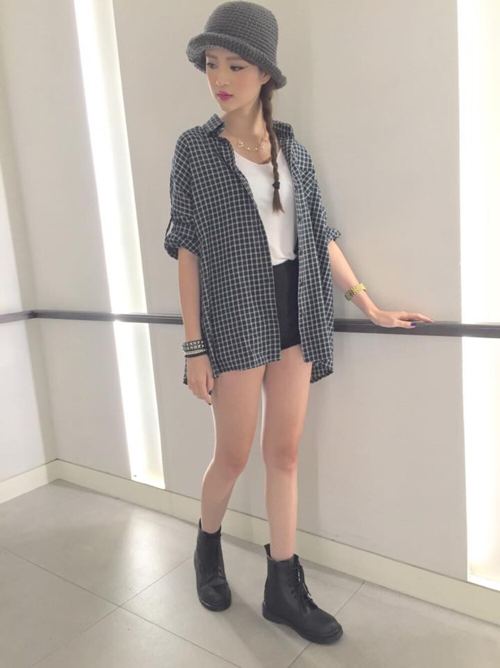 Gracegiftのシューズ「菱格紋側拉鍊馬汀靴」を使ったコーディネート
