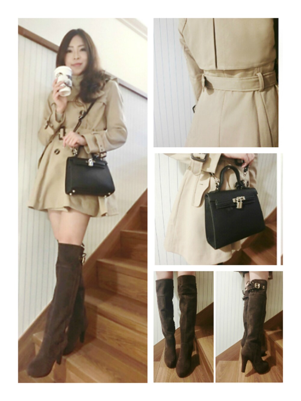 上班族不可缺少的是一件好看的風衣 在冷冷的冬天,只要換搭不同的單品, 就能輕鬆穿出禦寒又不失品味的OL穿搭 搭配綁帶高跟過膝長靴 更襯托女孩的都會幹練感噢~