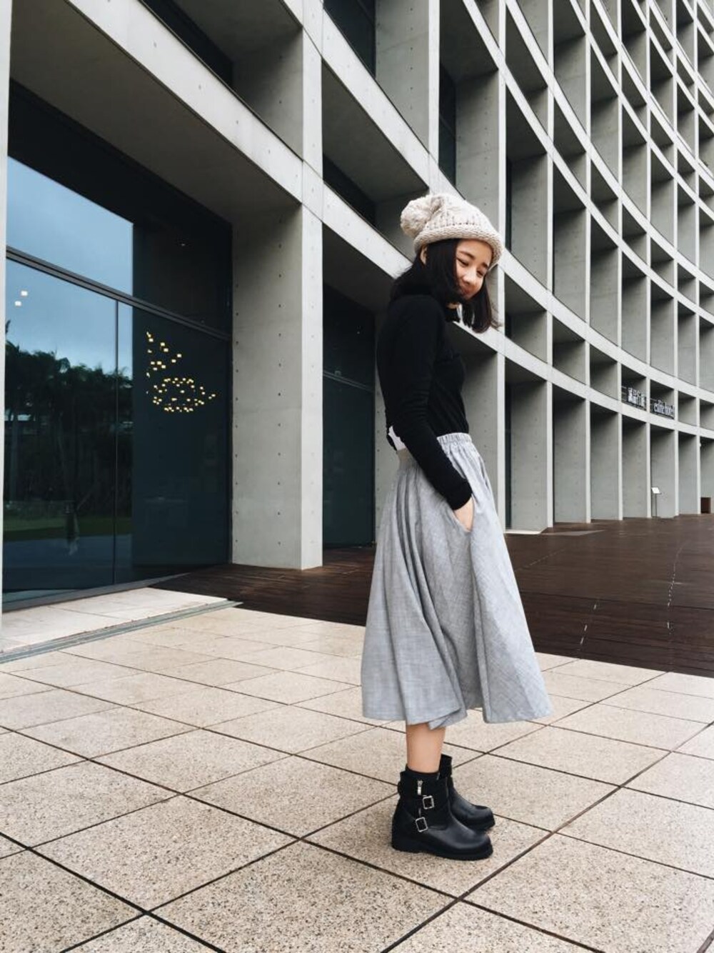 小隻好可愛!!! 每次看大學生了梅都覺得他也太自然可愛惹!!! 這次小隻穿上長裙x個性雙帶短靴 打造出屬於自己的個性的長裙look (微微露出的小短襪 也好可愛!