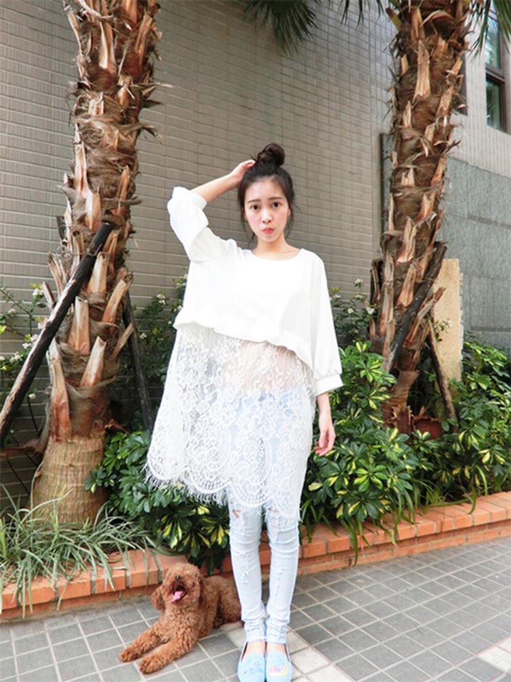 Qube真的好漂亮>////< 用蕾絲拼接的長洋 微微露出小蠻腰 半透視感 超性感 再用包包頭 跟可愛的雙子星樂福鞋 增加可愛元素 辛甜女孩 讓人百看不膩唷!!