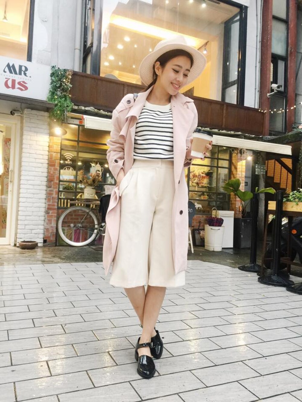唐葳 韓國街頭超流行寬褲穿搭術 葳葳好適合粉嫩系的衣服>////< 今年超夯的寬褲 妞兒有get嗎 害怕買來不知道怎麼穿搭的快筆記!! 葳葳用百搭橫條紋上衣做搭配 簡單又時髦 再加上一件粉色的風衣外套 可以修飾一下太過中性的感覺 記得一定要露出細細的腿跟腳踝 看起來比例才會好唷!!!