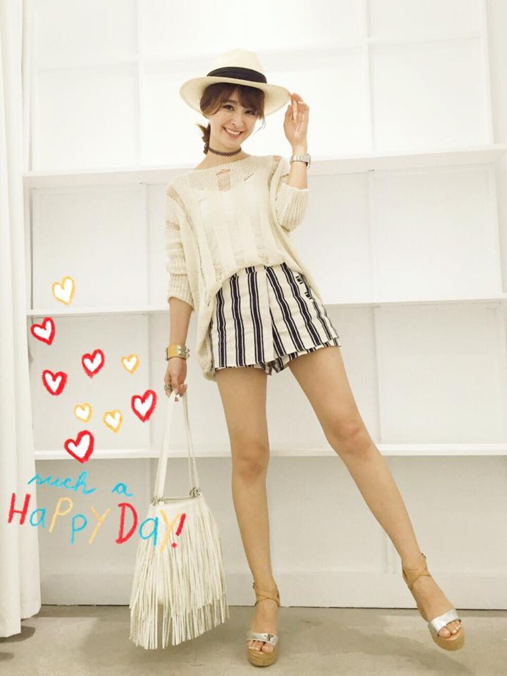 Kerina* 薛妞妞 微個性的清甜女孩look 夏天也還是可以用針織單品穿搭的唷 這件破損感的透膚鏤空針織上衣 穿起來時髦好看又性感 卻又會悶熱>////< 搭配今夏正夯的條紋褲裙 中和透膚得太過性感 增添中性的俏皮感