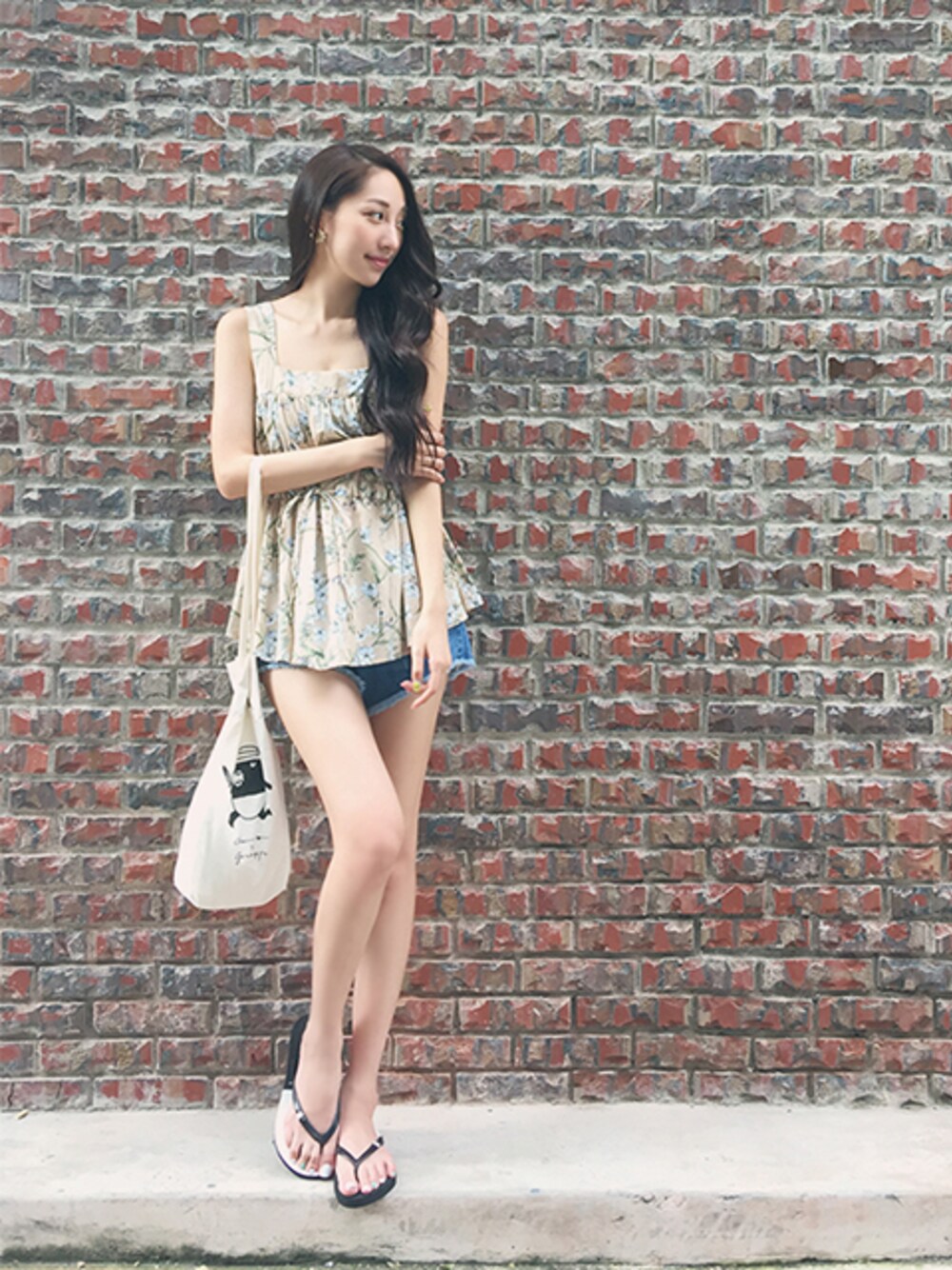 Treeny 純純 鄰家女孩LOOK 小碎花的洋裝設計小露性感 看似隨意搭件牛仔短褲 卻在細節處用盡小心機 下擺微微鬚邊剪裁設計 隨風擺動 魅力感十足 微微散發 鄰家女孩的氣質 穿上今夏必定要購入的 黑白經典馬來貘海灘拖 簡單可愛的搭配 再拎著馬來饃經典束口袋 黑白時尚 無人能敵