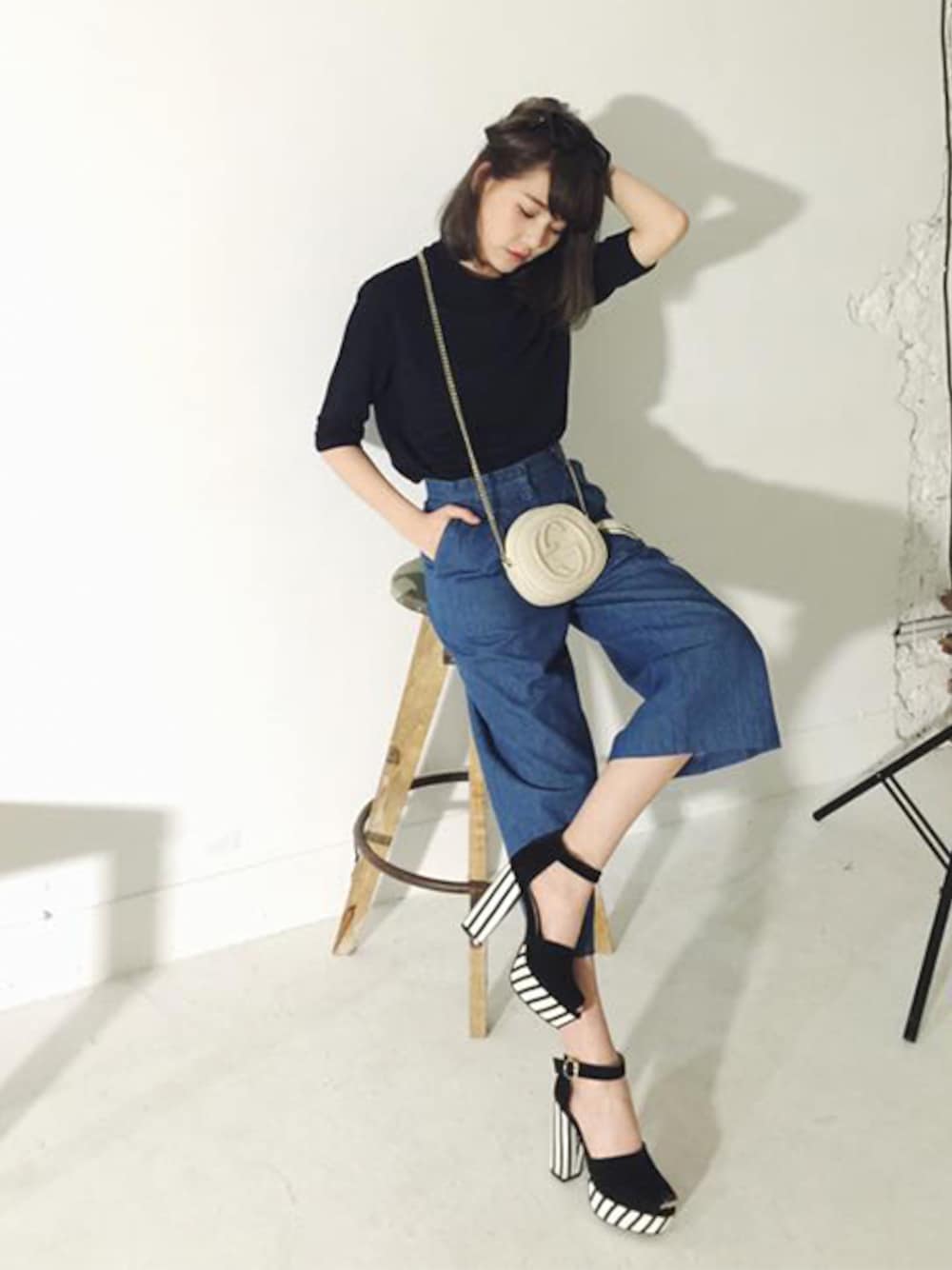 正方形小妞ㄦx鄭婕彤 個性滿點粗跟鞋Look 流行的牛仔寬褲+百搭黑上衣+白色時髦小包包 簡單又時尚 黑白條紋的粗跟跟鞋 與穿著相呼應 厚底粗跟再增添專搭的個性感 帥氣十足之餘 又帶有滿滿女人味❤