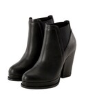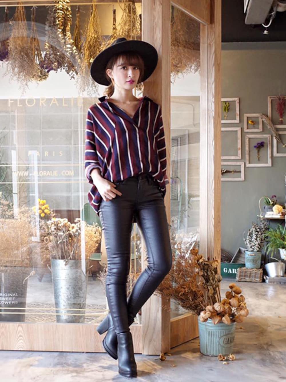 Kerina* 薛妞妞 微尖側鬆緊防水台高跟踝靴穿搭 皮褲+短靴 就是帥氣>///////< 搭配v字領口的直條紋襯衫 有種帥氣的性感 妞妞真的好適合這種帶點個性的裝扮 好正唷!!!