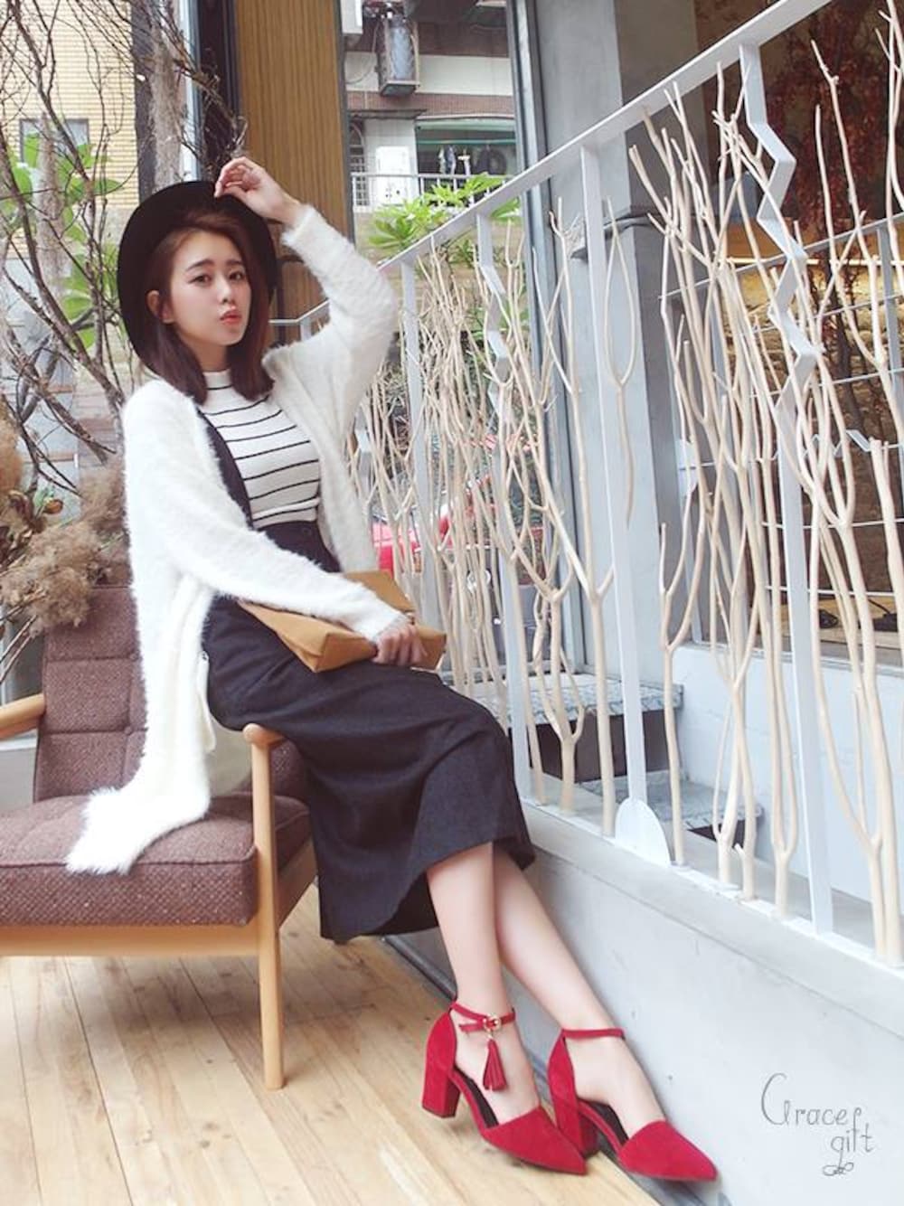 唐葳 wei wei 復古流蘇繞踝中跟鞋穿搭 漂亮的葳葳今天示範氣質優雅穿搭♡♡ 大家衣櫃裡面都有的簡單橫條紋上衣 搭配高腰吊帶裙 拉出完美腰部曲線 外面搭配一件柔軟的開襟針織外套 簡單趁出女孩的柔美氣息 外面可以再搭一件oversize的西外 更加保暖外也更有型唷