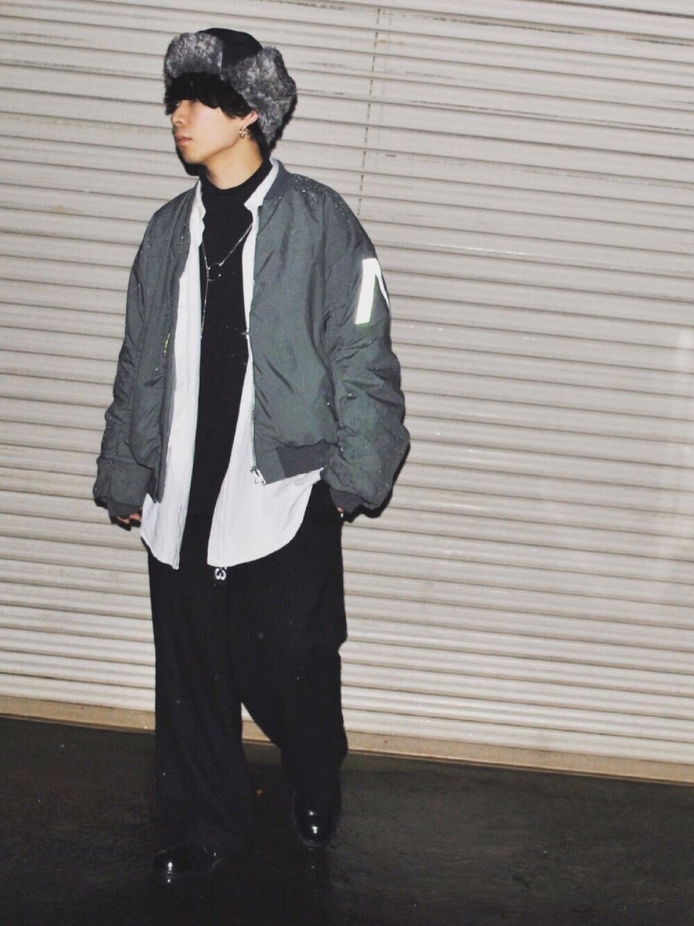 こんばんは。 LADのMA-1をようやくゲットしました。 ワイド感と袖のたまり具合がたまらんです🤤 スキニーでも合いそうですが、とりあえずLADっぽくワイドパンツで合わせました。笑