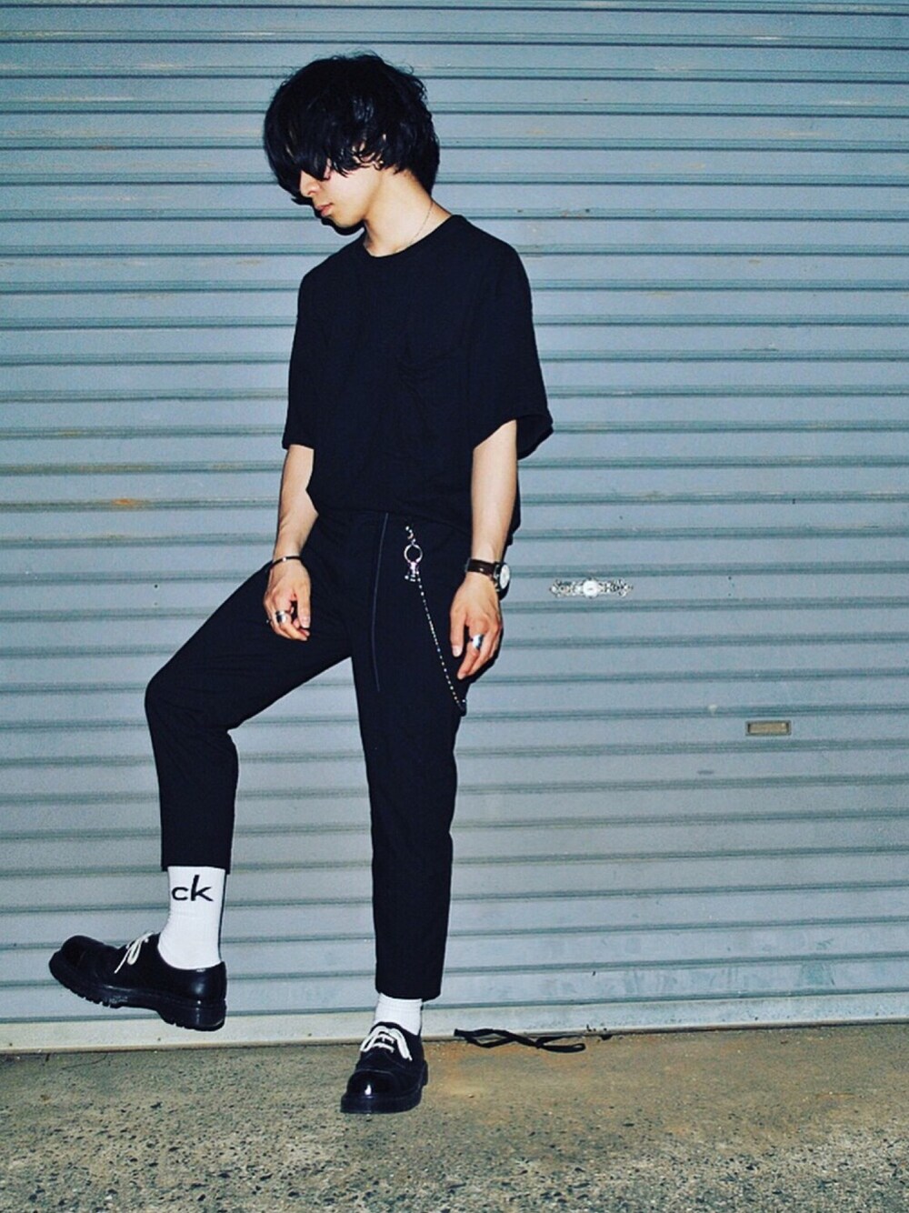 こんばんは。 オールブラックにCKの白ソックスにエンダーのネイビーベルト 来週東京行きます楽しみ🤤