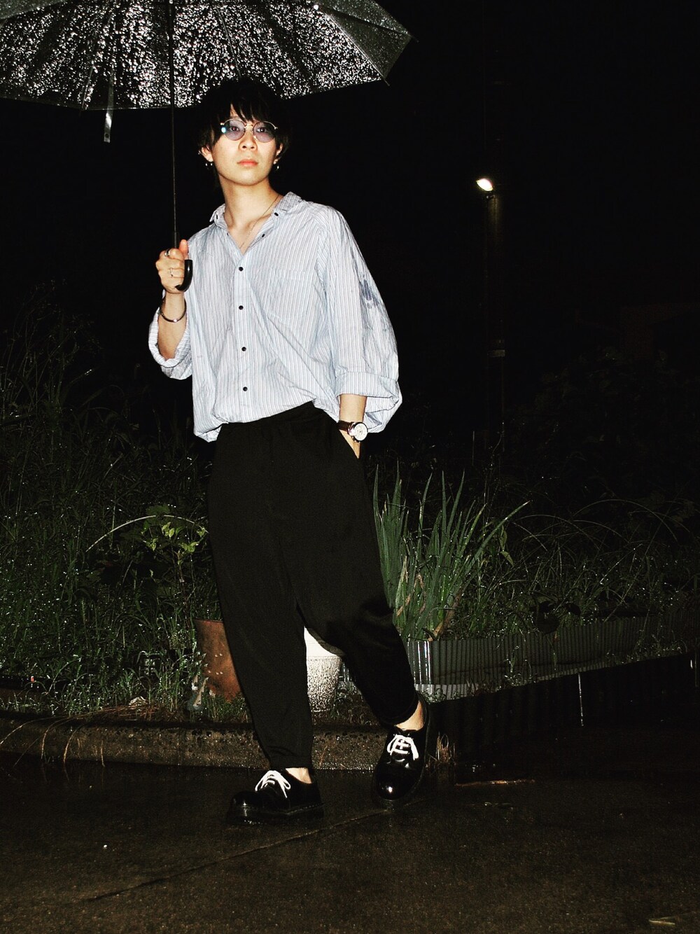 こんばんは。 この前のコーデです。jiedaのストライプシャツにギャルソンのジャージパンツ。 もう暑くて長袖着れんくなって辛いです。🤦♂️ 夏はTシャツばっかで正直飽きてきますね🤦♂️