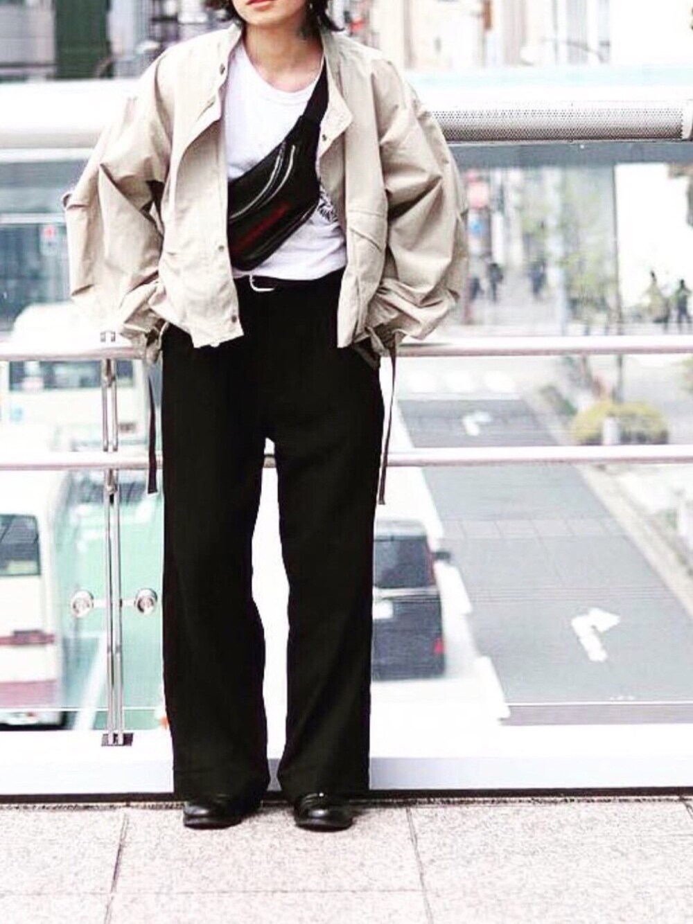 この前名古屋行った時に心さんに撮ってもらったコーデ。 toironierのショートブルゾンかーなーり使えそうです😏😏😏 もう暑くなりそうなので今のうち重ね着しないとなぁ。