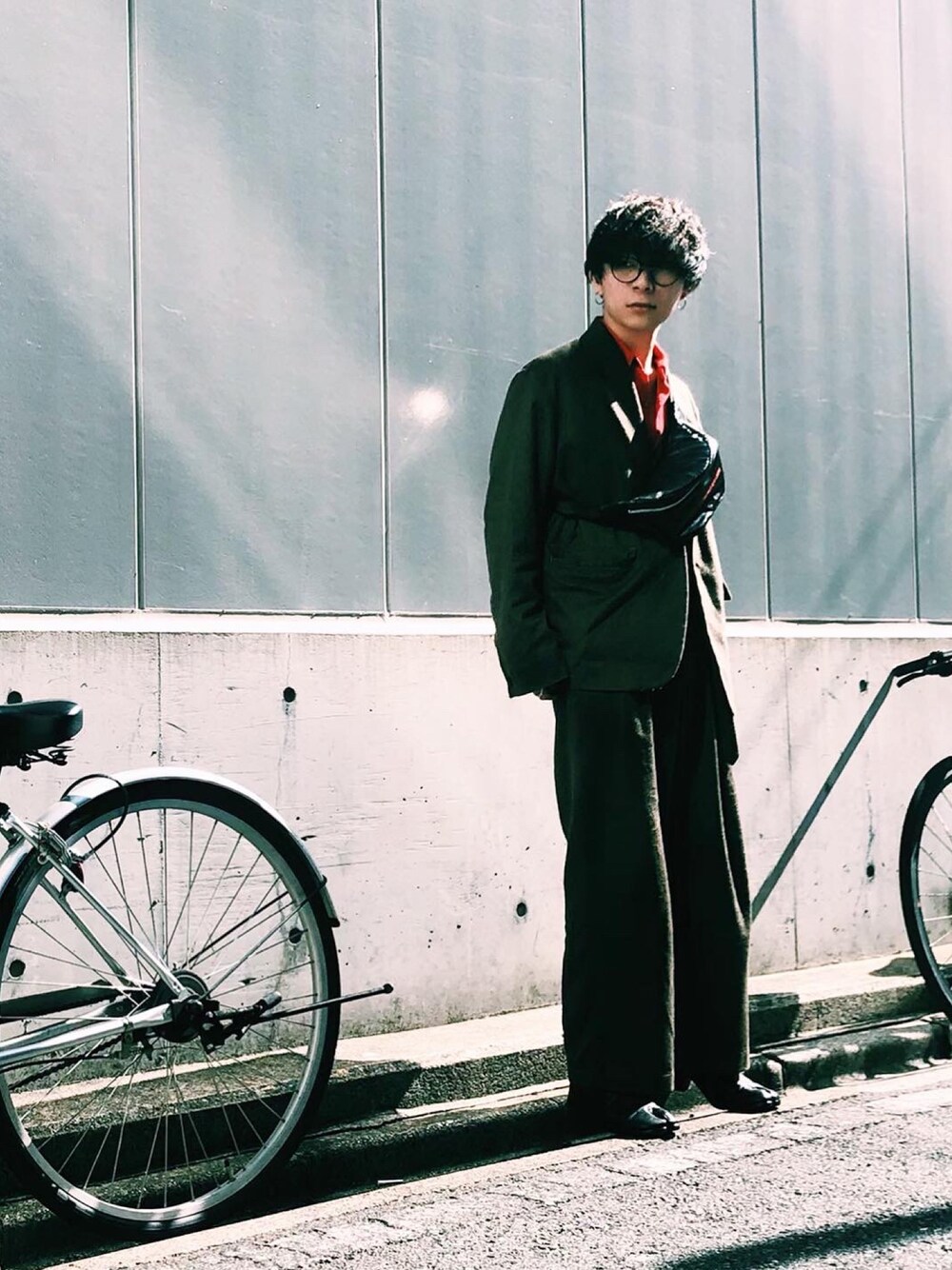 この前名古屋行った時のコーデ。 セットアップに赤シャツ良き〇 Instagram→@ryotainoue_21