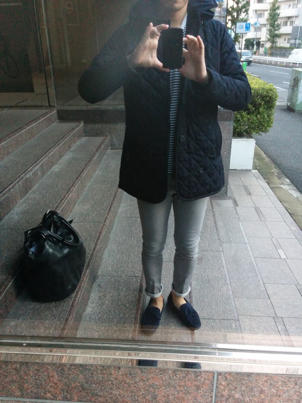 コートはラベンハムのソリッドウール。 ジャケットは見えないけどUA。 パンツはナノユニバース。 大分寒いので、初コートやで
