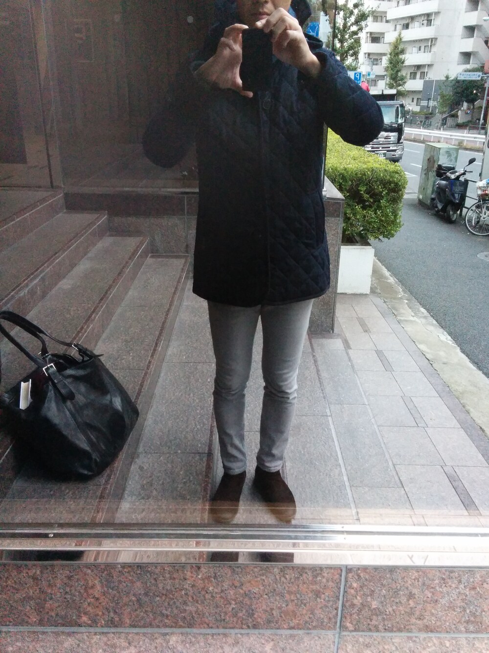 寒いので防寒スタイル。 コートはラベンハムのソリッドキルティング。 ブーツはSHIPSのスウェードブーツ。