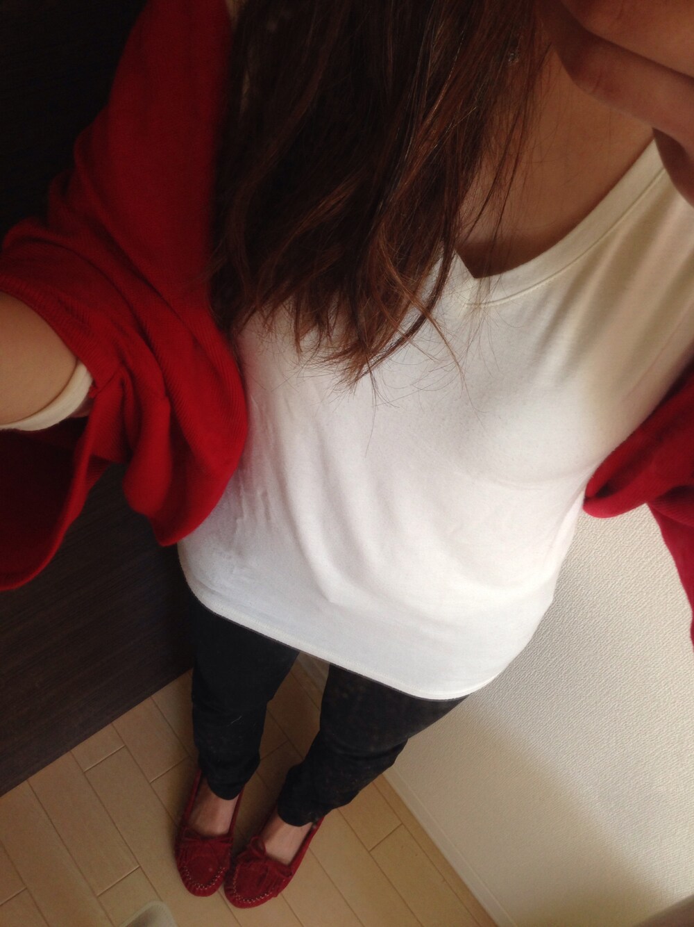 ロンT:AZUL パンツ:gu カーディガン:? 靴:モカシンシューズ 娘と公園に行くので 動きやすさ重視で…♡