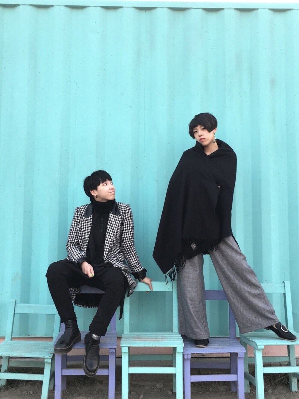 大印花千鳥格大衣與黑主調的搭配 另一半的褲子是小印花千鳥格拍起來不太清楚!