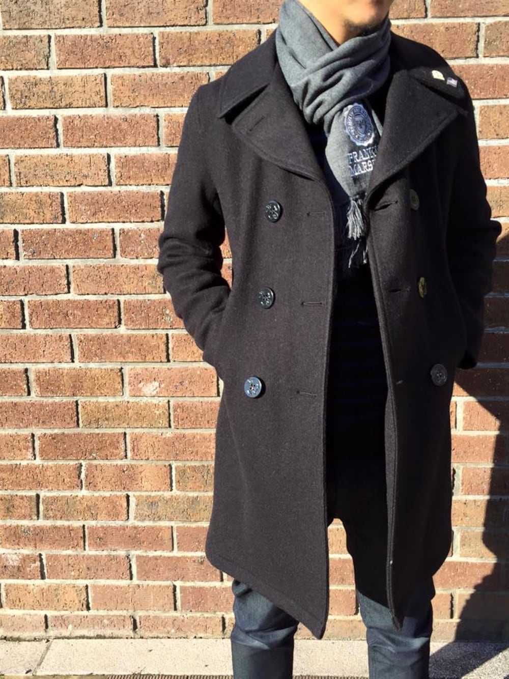 GRAVY'Sのピーコート「22OZ LONG PEA COAT SATIN LINING ANCHOR BUTTON DARK NAVY ピーコート」を使ったコーディネート