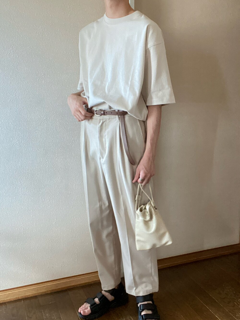 【 ワントーンコーデ 】 白をベースにコーデを組んでみました! お洒落感を出すためにベルトを 垂らしてみるのも◎