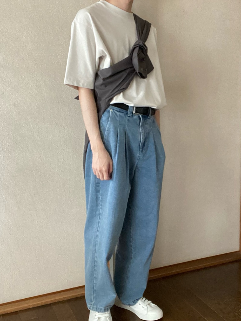 【 たすき掛けコーデ 】 暗めのシャツを使って たすき掛けをしてみました! 着用しているRUUBONのデニムが シルエットも良くて着回ししやすい◎