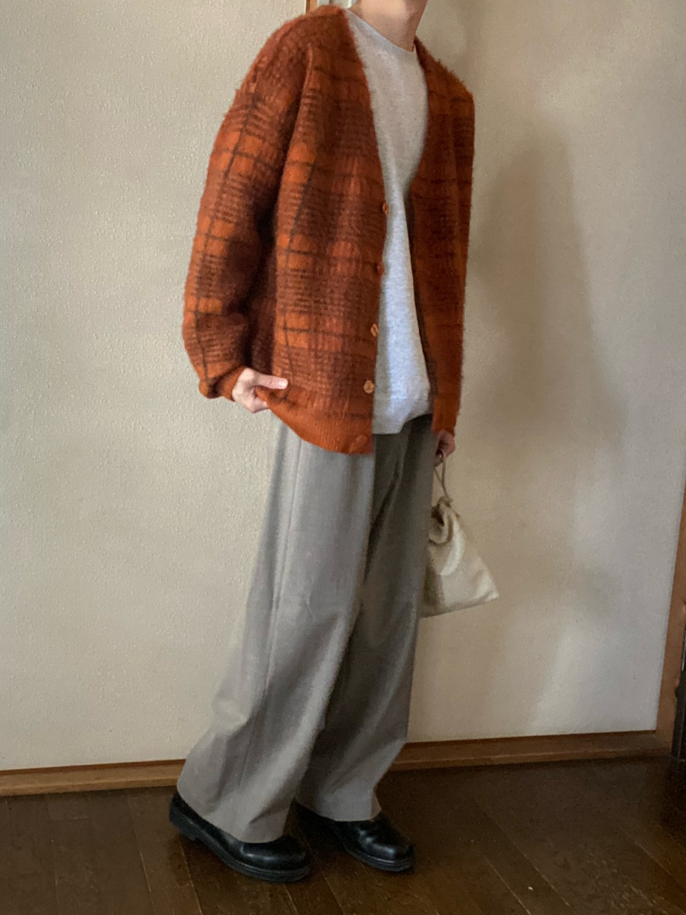 【 秋らしいコーデ 】 Perushuのレトロなカーディガンを 使って秋コーデをしてみました! 綺麗めとの相性も良く 肌寒い日などにも抜群です◎