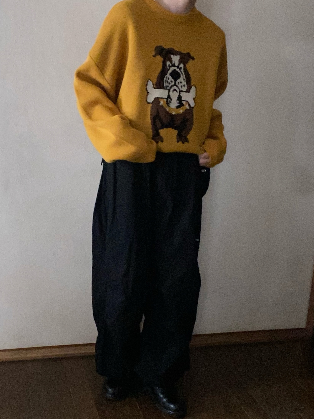 【 ニットコーデ 】 1枚で決まる秋のニットコーデ! 黄色と黒の相性は良く黄色のスニーカーなど も合わせたらもっと良くなりそう◎ ○秋はニット着たくなります🍁 ____________________ Instagram o__umaaa