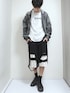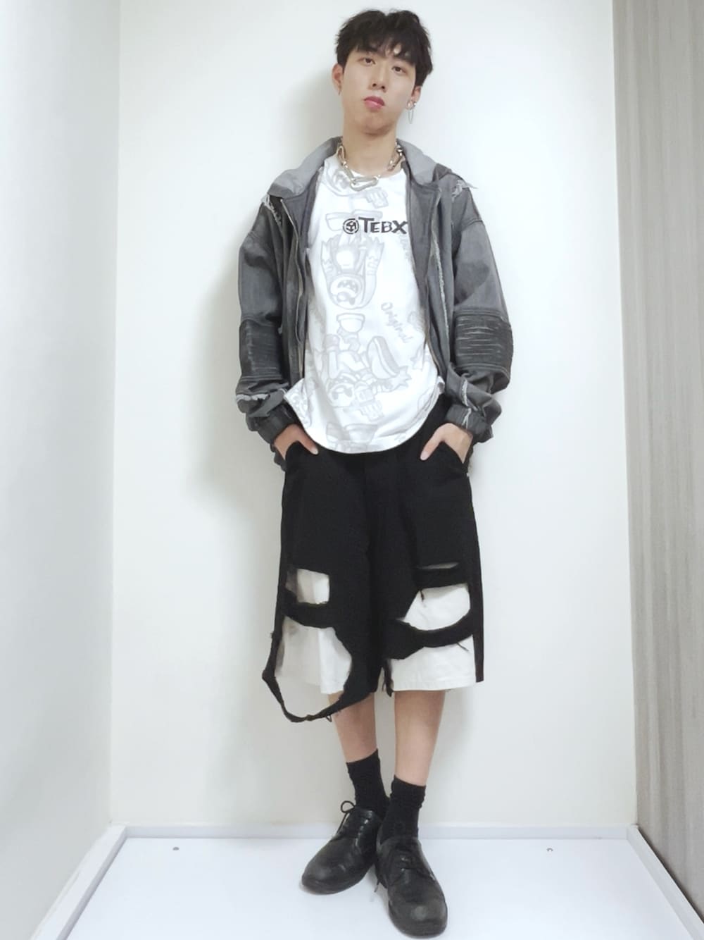 《T-shirt X zip parker X half pants 》 [Colour:white X black X grey]