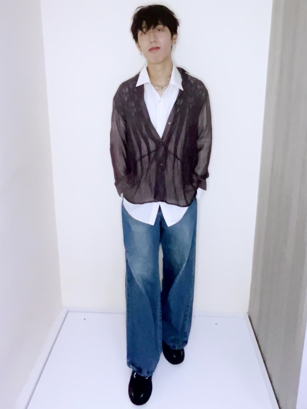 [shirt X mash shirt X denim] 《white X purple X blue X black》