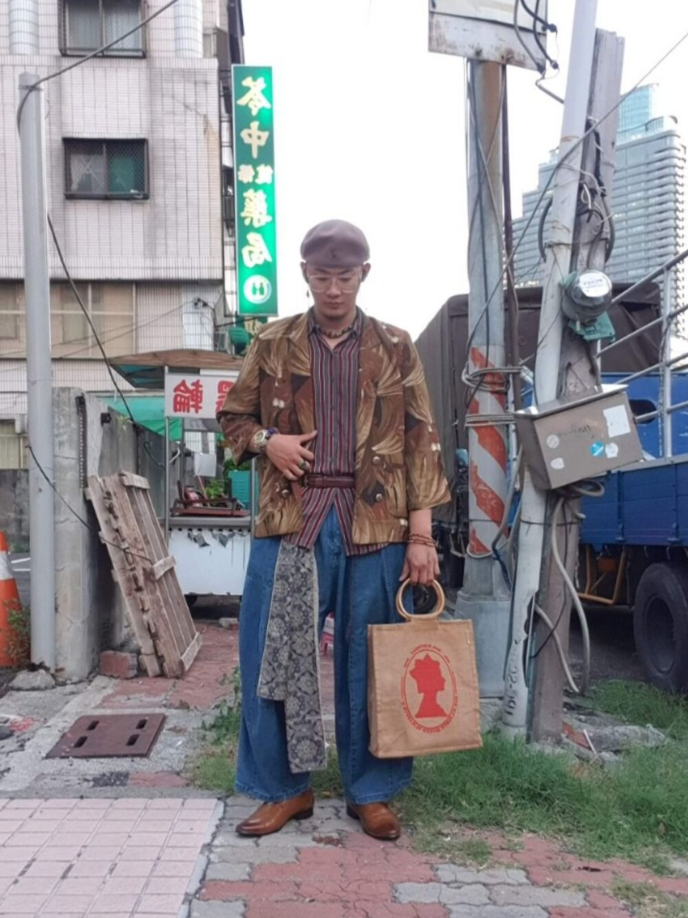 這種穿搭成果算是我自己穿起來最自在的。 / Hat: @kangol_headwear Outer: no brand Inner: no brand Pant: used Bag: used Shoes: no brand Model: @gray_humer
