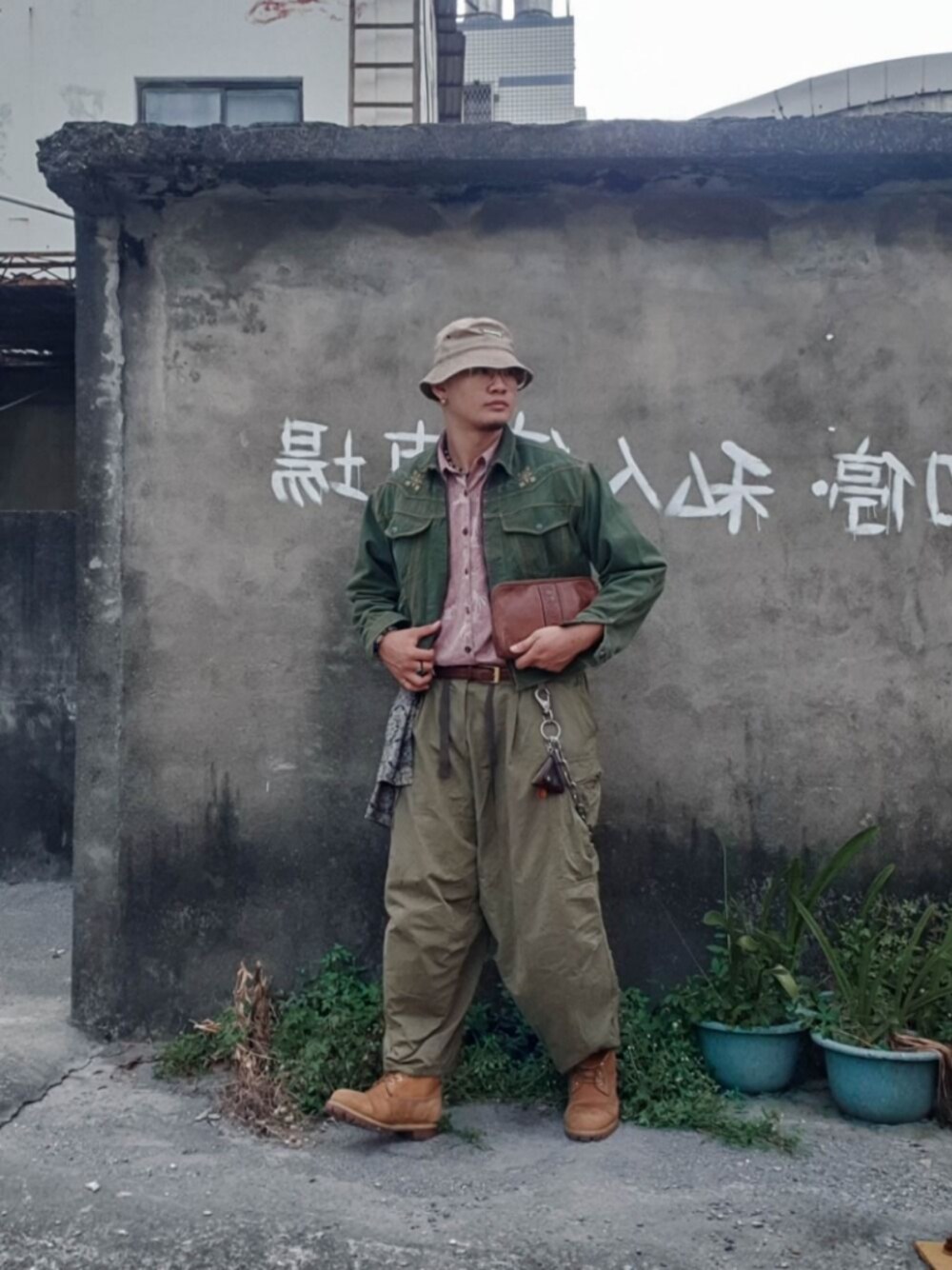 有幸得到厚工的早期短板牛仔外套 少見的綠色,紮實的做工跟特別的類似花磚刺繡,都讓我一試穿上就帶走。 美式短板的外套做搭配的時候會嘗試只將配件放在中間的皮帶附近。 這種外套是很好展現比例的單品,所以就順著身上單品的個性做選擇,裡面套一件粉色的襯衫做出顯眼的層次,其他單品都用低彩度來做整體色調,最後中間的一些裝飾做點綴。 / Hat: @3thclub Outter: @backtothepast.taiwan Inner: @somegood_vintage Pant: @unique_select 腰布: used Bag: @old_lovelife Shoes: @timberland_taiwan Model: @gray_humer Ig: @ootgray