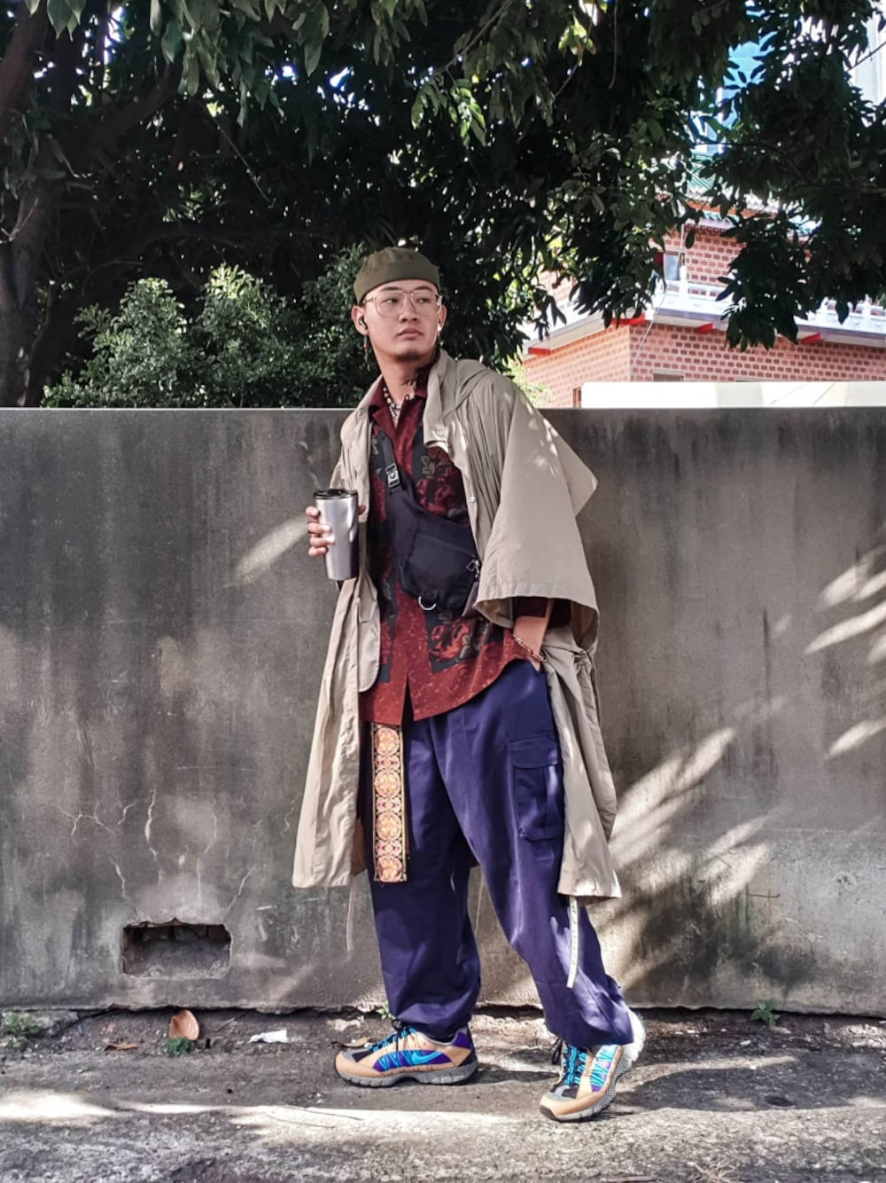這次帶著 @zara 的兩件單品來整體風格搭配了,分別是大風衣外套跟胸包,兩件都是試穿後立馬結帳的黑馬單品。 / 這件風衣外套是少數讓我穿上去會很興奮的一件。他的整體罩衫剪裁設計很特別讓他的不但輕盈而且垂墜感十足。 側邊的綁帶設計讓在扠口袋的時候不論是從中間插還是將外套撥到後面都是舒適合理也讓側面視覺效果十足。 7.8分大袖口設計除了能讓裡面的袖子露出來以外,風灌進去後澎起的效果也讓人驚喜。 這次整體為了配合外套的單色,採用比較複雜花色的襯衫,鞋子,並用藍色褲款,再背上這個特別版型得包款做層次,主旨讓整體外套露出來的地方足夠鮮艷對比。 / 值得一題的是這件外套是在女裝櫃,只能說女裝在設計上常常比男裝更給人驚喜跟意外,有興趣的人可以多去女裝部走走,常常會有驚喜。 / 剛好這次下午的光也夠好,讓照片質感上升,整個人踩在光上。 / Hat: no brand Outer: @zara Inner: @3thclub Pant: @eaststar2016 Bag: @zara 腰布: no brand Shoes: @nike Model: @gray_humer