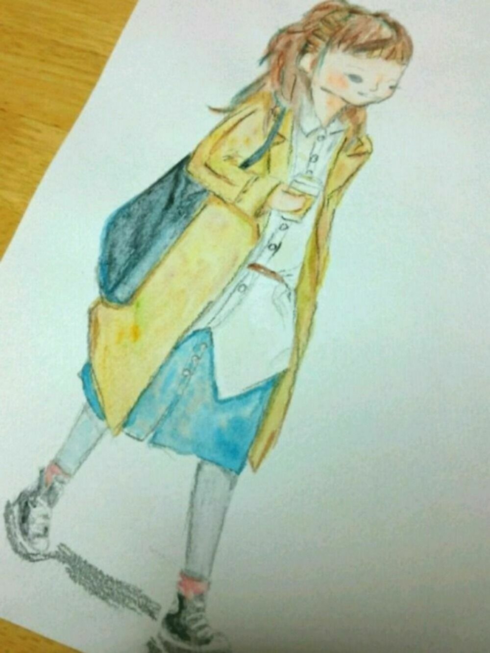 雑誌で気になった子をスケッチ(^^) 超アナログ撮影法,下手で見づらかったらごめんなさい笑 ▪️FUDGE2017年1月号スナップ ▪️トレンチコート ▪️シャツワンピース2枚重ね着 ▪️タイツ ▪️スニーカー