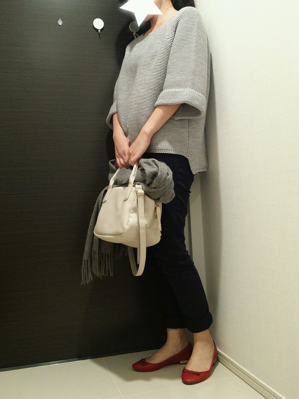 こんにちは フォロー&SAVE&♡ありがとうございます🙏 今日もなんとなく寒色コーデになってしまったので ZARAの赤いバレエシューズをポイントにしてみました パンツもZARAの¥3900くらいの安いやつで、 黒に見えるけどネイビーです 今日はたくさんの人に初めて会う日だったので、 シンプルかつ好印象を持たれるようにと思ったのですが 写真に撮ってみると意外とガチャついてるなぁ…笑 今週も素敵な1週間になりますよう🙏✨