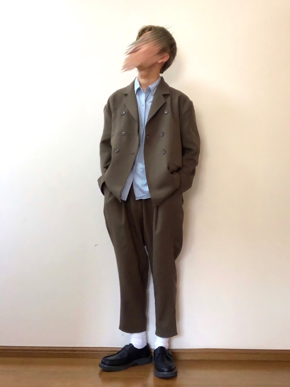木豆寸のスーツセット「シルキーポリダブルテーラード イージーセットアップ」を使ったコーディネート