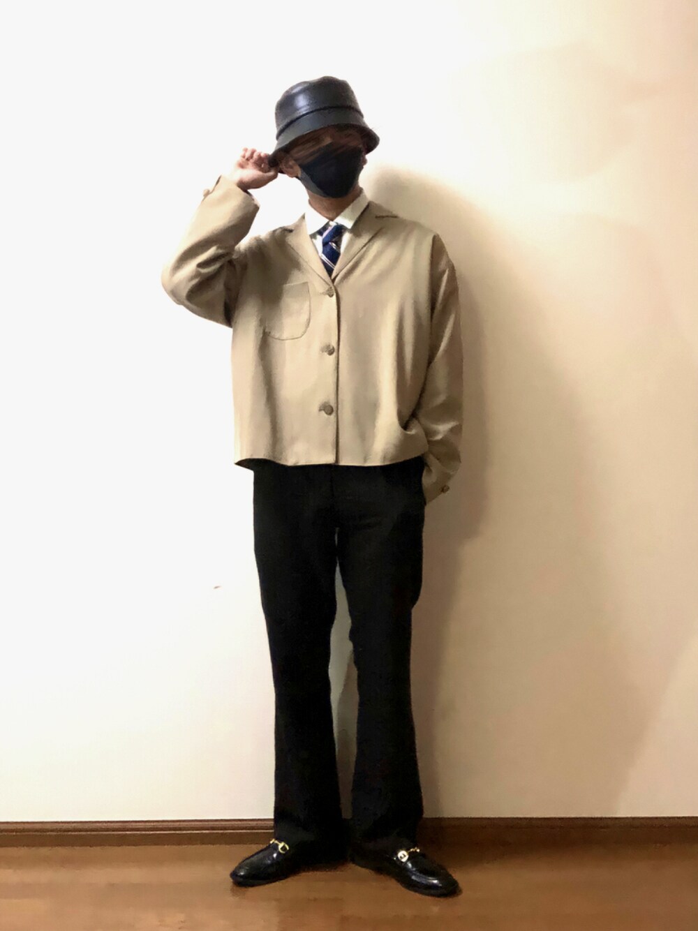 木豆寸のハット「フェイクレザーバケットハット」を使ったコーディネート