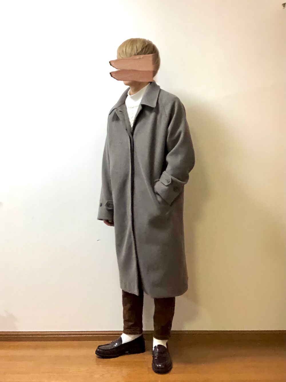木豆寸のステンカラーコート「オーバーサイズ メルトンラグランスリーブロングステンカラーコート」を使ったコーディネート