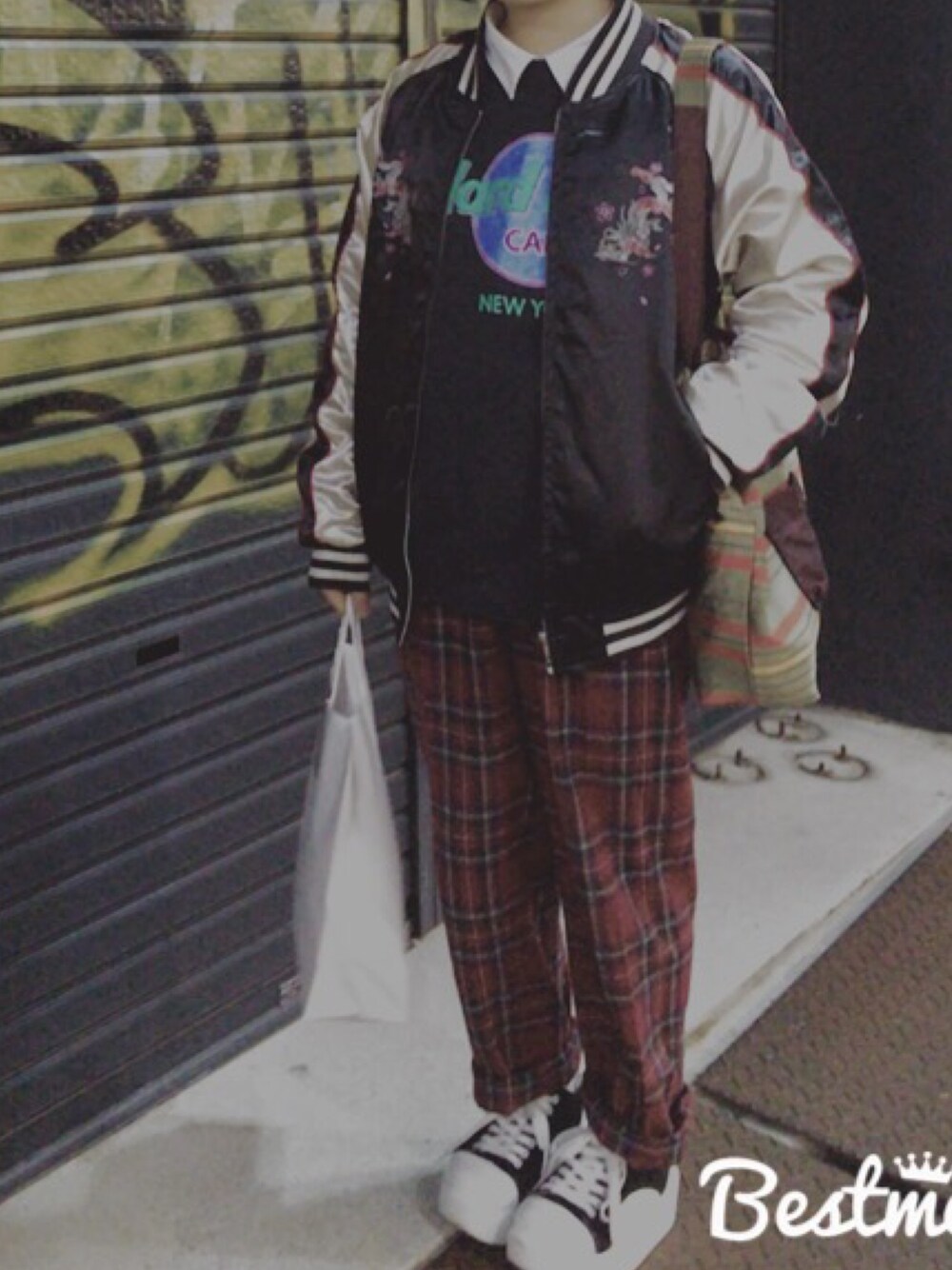 アメリカンキッズな感じのコーディネートに、スカジャンを合わせてみました。