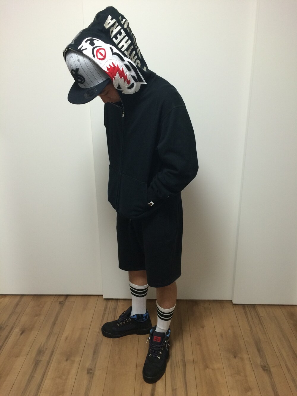 またまたAllブラックコーデ。 靴はティンバーとシュプリームのコラボ。