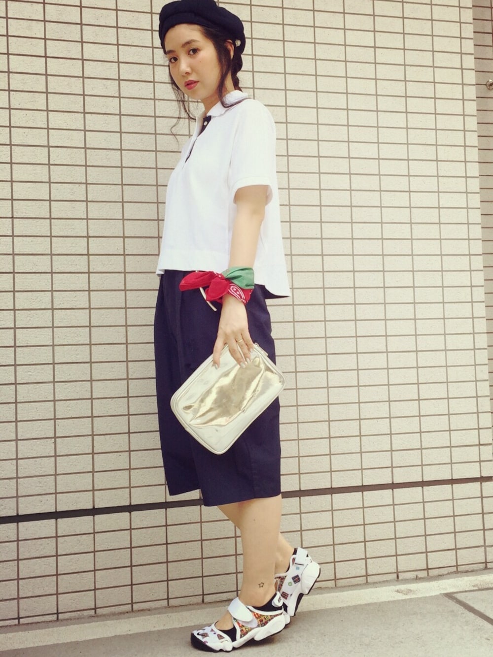 Famdayコーデ👬👫 👒ビームス 👕ルチャリブレ 👖KBF 👟Nike 腕に巻いたtogaのバンダナとエロかぶりしたキャスケットがポイントです😋
