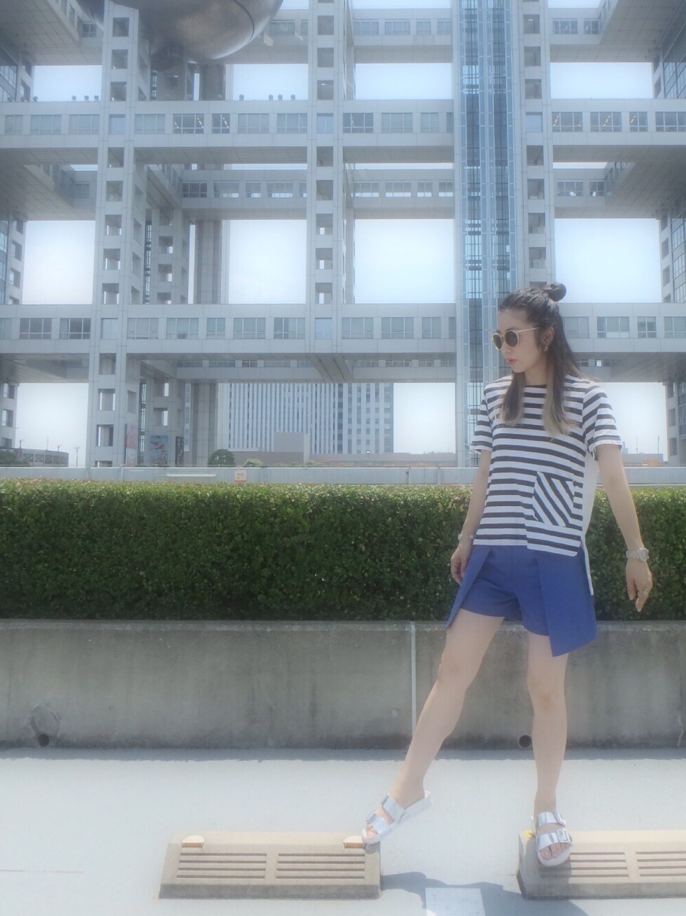 モードカジュアルコーデ トップスもパンツもカッティングがモード要素がありながら、カジュアルに仕上げるためにサンダルで😙 H&Mのサンダル本当使える〜♡