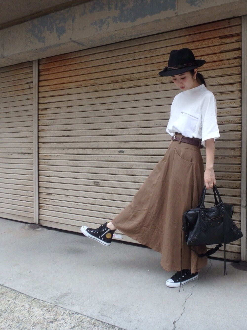 旦那さんには、ディズニーのキャストぽいと言われたコーデ😂✋🏻 私的にはお気に入りなのになw ブーツだと重くなりすぎるので、スニーカーでハズしてみました👟👟