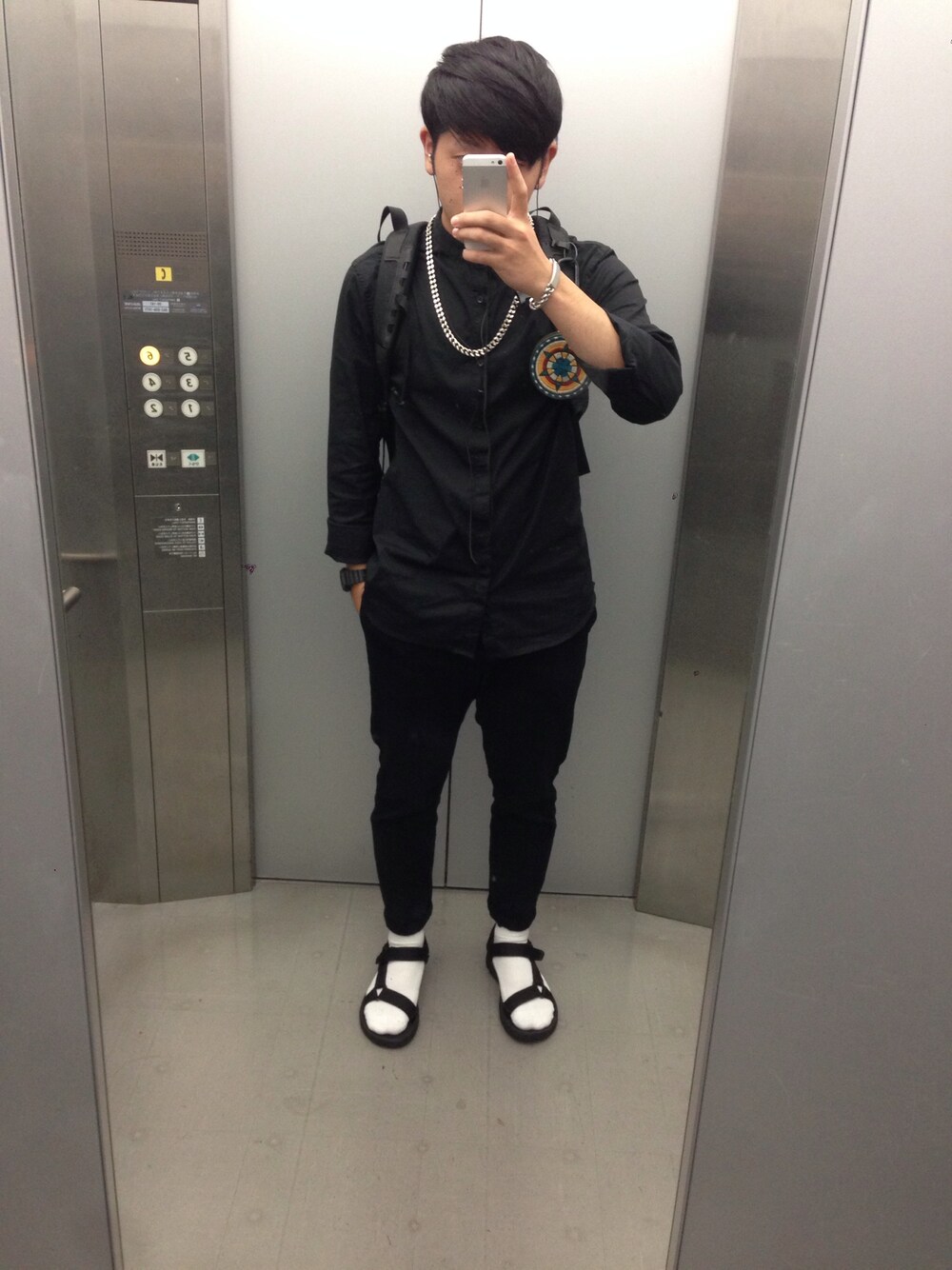 シャツ、H&M パンツ、g.u. ネックレス、too much 靴下、ナイキ サンダル、teva カバン、アークテリクス コインケース、ブラックミーンズ