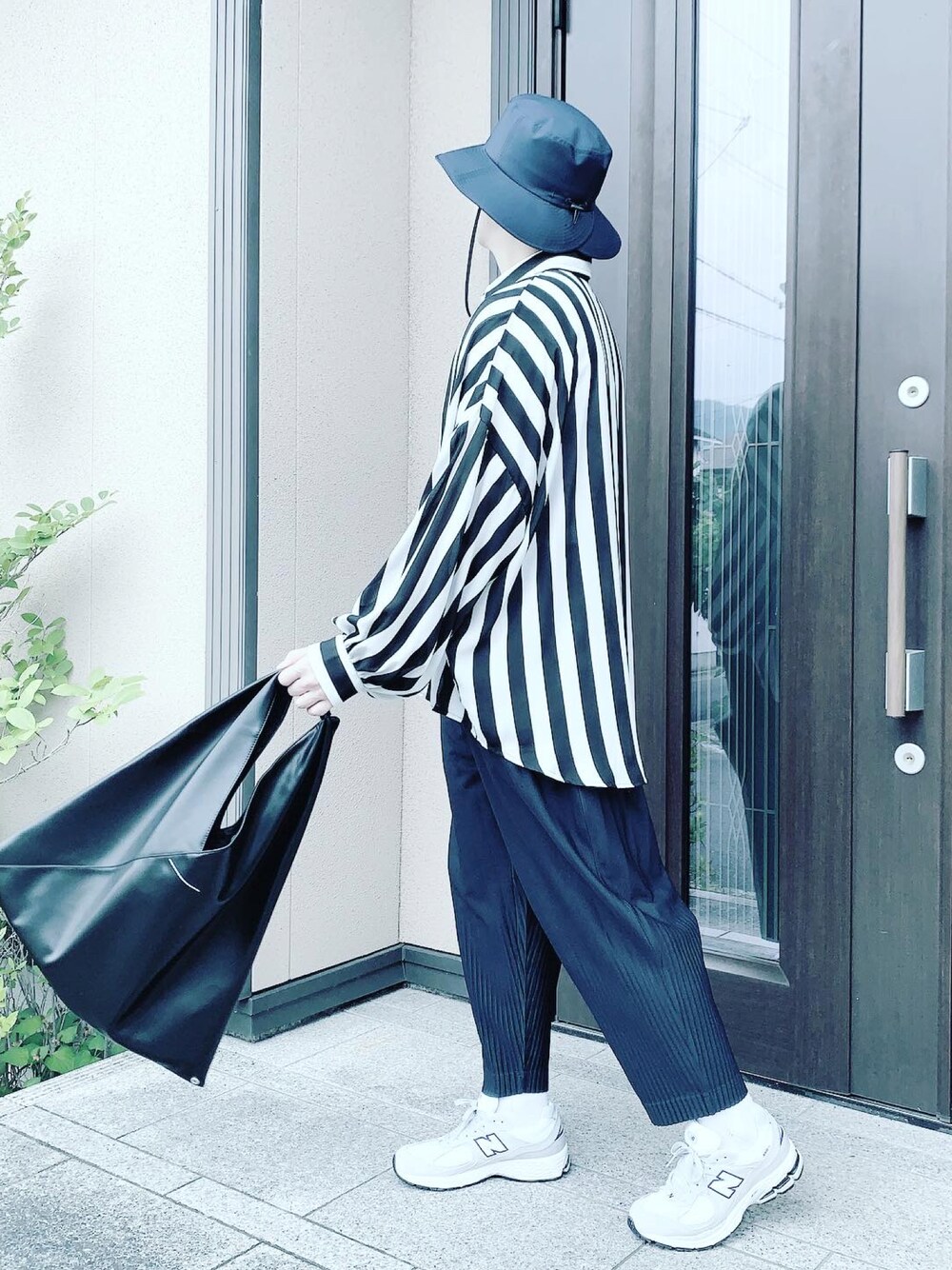 hat #studionicholson pants #isseymiyake shoes #newbalance bag #mm6