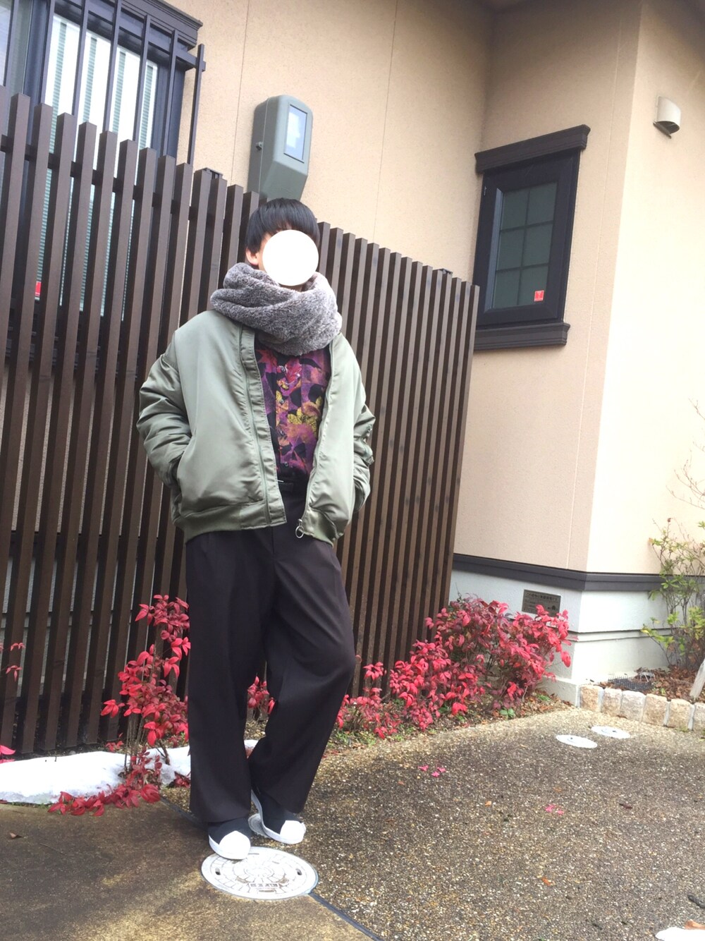 こんにちは! 最近はバイトがはじまり忙しくなったので、更新がこんな時間に😭 お風呂に入りたいので短めに。。 今日のコーデはbigシルエットです! who's who のbigma-1を中心に、パンツをワイドで合わせてゆるっと感をイメージしています! このma-1!!すごく温かいんです!!ダウンのよう!! さらにスヌードまでしているのでぽかぽか🌞 ゆるっと感のあるコーデにインパクトをつけるため、シャツには派手めキツネ古着を取り入れています! HAREのワイドパンツ、アディダスのスリッポンは安定に使いまわせますね☺️ ずっと気になっていることがあります。。 もしこのクソ面白くない長々とした自己満足ブログのような僕のWEARを毎回見てくださっている方だと気になっているかもしれません笑 雪が上から積もり少し弱りましたが。。 ずっと気になる。。 それは。。。。 そーゆー色なんか?どうなんや? うしろの小さい木はいつまで紅葉してんねん!! ʕʘ‿ʘʔ