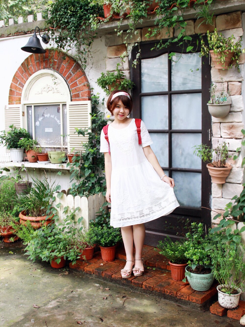 ホワイト系のワンピースを着用したレディースの夏コーディネートの1枚目の写真
